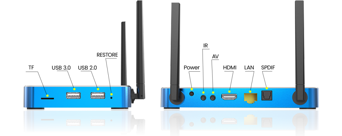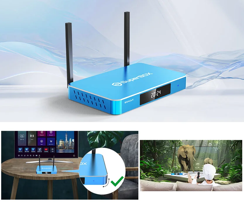 The SuperBox S6 Max excels with exceptional data transfer and processing speeds. It features 2.4G/5G dual-band WiFi and supports WiFi 6, complemented by 1000 Mbps Ethernet ports. Dual external antennas ensure smooth streaming, while Bluetooth 5.2 provides seamless connectivity with the latest tech devices.