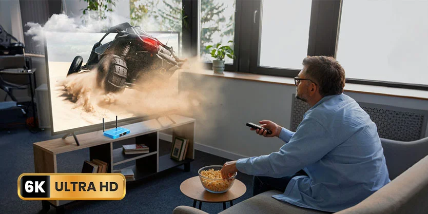 The SuperBox S6 MAX is equipped with a Mali-G31 MP2 GPU, designed to support 6K video resolution and deliver advanced image and video quality. This powerful GPU enhances your viewing experience by providing crisp, clear visuals and smooth playback, making it ideal for high-definition content.